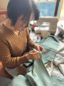 裁縫代行のたき福裁縫さん。ボタン付けから洋服のリメイクまで、その場でテキパキ対応してくれますよ。布もののお困りごとはぜひたき福さんまで!