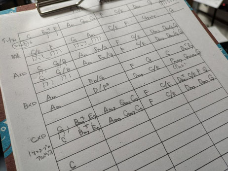だから、アレンジの素材になるコードさえ書かれていれば、あとはやりながら演奏をかんがえていくから、なんですね。